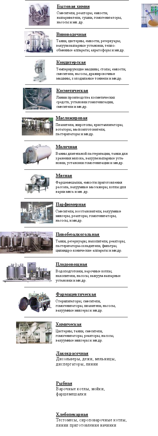 ПИЩЕВОЕ ОБОРУДОВАНИЕ, ЕМКОСТИ, АГРЕГАТЫ из нержавеющей стали, насосное оборудование |